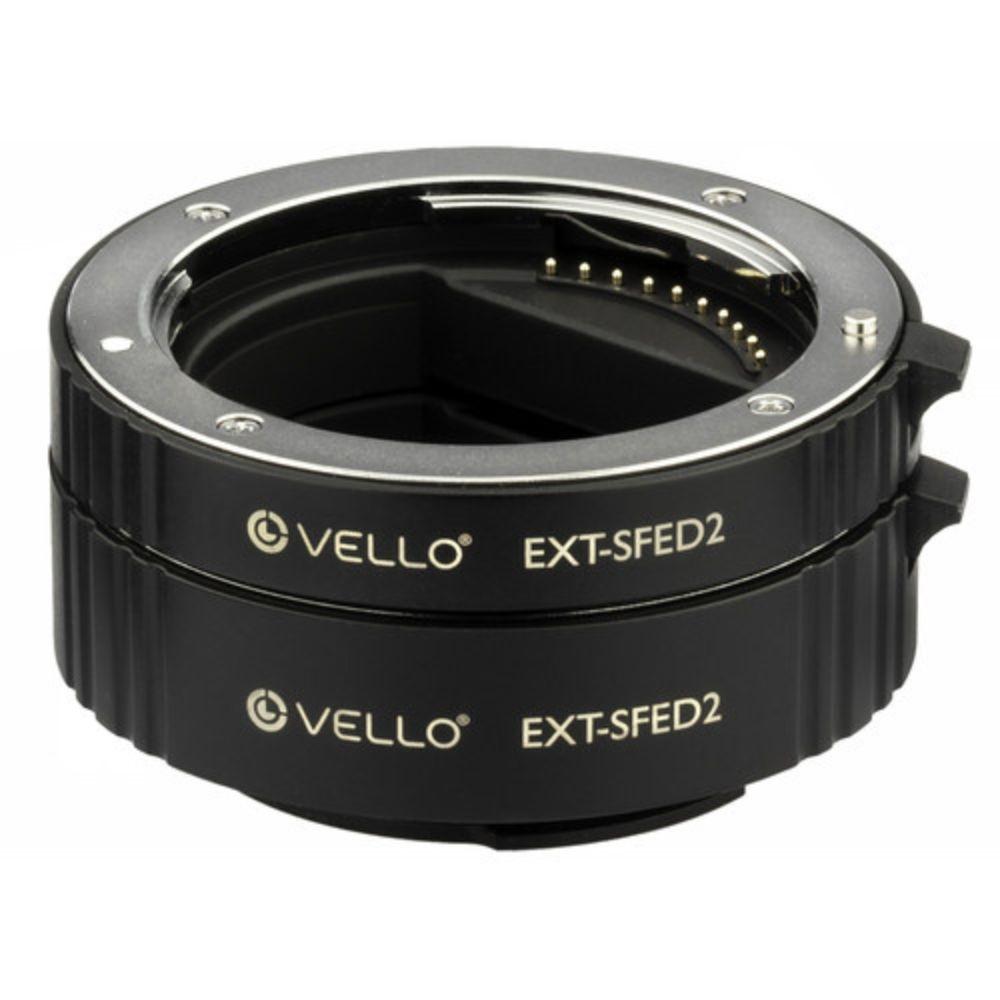 تتكون مجموعة أنبوب تمديد التركيز التلقائي EXT-SFED2 لعدسات Sony E-Mount من Vello من أنبوب مقاس 10 و 16 مم يتيح استخدام العدسة العادية لتصوير الماكرو. من خلال وضع أنبوب بين العدسة وجسم الكاميرا ، فإنه يقلل من مسافة التركيز البؤري الدنيا للعدسة ، وبالتالي يخلق تأثيرًا مكبّرًا. يمكن استخدام كل أنبوب على حدة أو مجتمعة لزيادة التكبير ، كما أن هذه الأنابيب مناسبة لكل من الكاميرات والعدسات ذات الإطار الكامل وبتنسيق APS-C.