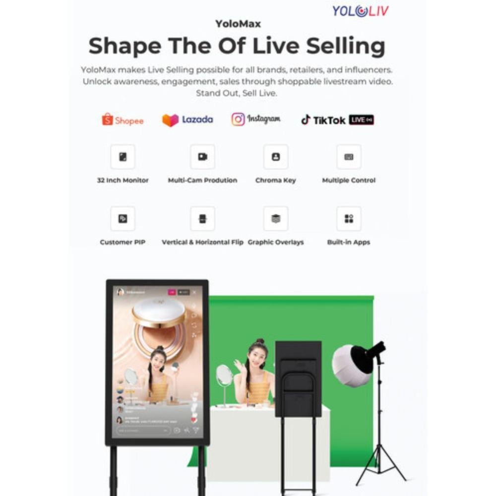 أضف بثًا متعدد الكاميرات إلى Instagram وTikTok وخدمات البث المباشر الأخرى باستخدام حل البث المباشر YoloMax All-in-One مع شاشة لمس مقاس 32 بوصة من YoloLiv. يتميز بشاشة لمس LCD ضخمة مقاس 32 بوصة، وقد تم تصميم YoloMax للمعلمين والمبدعين ، والبائعين الذين يرغبون في التحكم بشكل أفضل في عمليات البث الخاصة بهم أثناء عرض صورة كبيرة وواضحة للخلاصة الخاصة بهم. فهو يتيح طرقًا متعددة للاتصال بالإنترنت، بما في ذلك Ethernet وWi-Fi وحتى بطاقة SIM المحمولة.