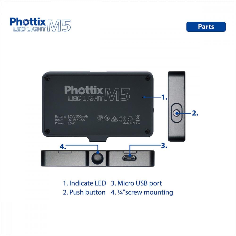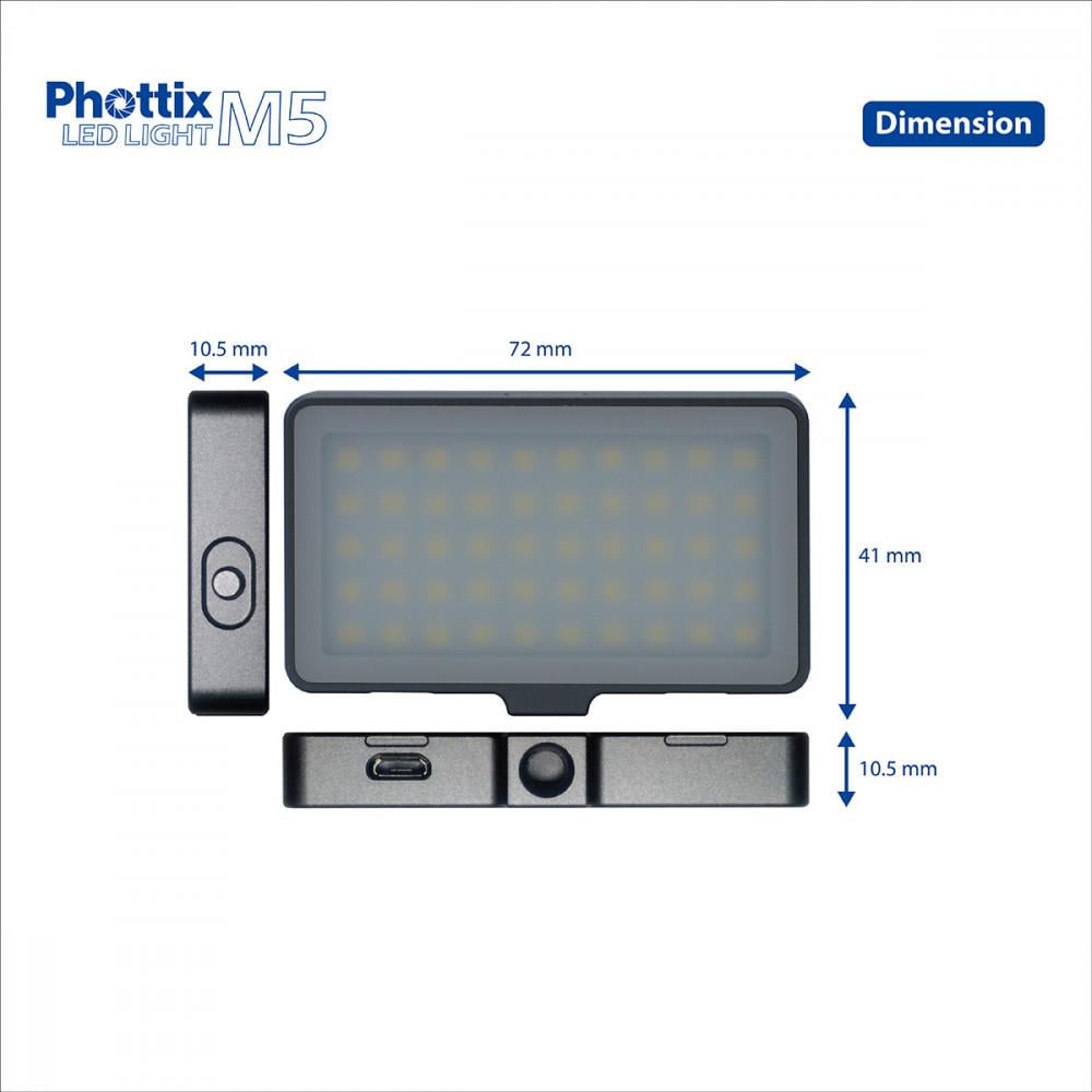 إن مصباح M5 Daylight LED من Phottix صغير وخفيف الوزن وقادر على الإقامة في حقيبتك دون أن يلاحظها أحد حتى تحتاجها. تجعلها درجة حرارة اللون 6600K مثالية للتصوير في وضح النهار أو مطابقة تركيبات أخرى. لديها تصنيف CRI يبلغ 90 وهو ضمانك لإعادة إنتاج ألوان فائقة. يتميز بنطاق تعتيم من 5 خطوات ويعمل ببطارية داخلية سعة 500 مللي أمبير في الساعة والتي ستمنحك وقت تشغيل من ساعة إلى ساعة ونصف عند الشحن الكامل.
