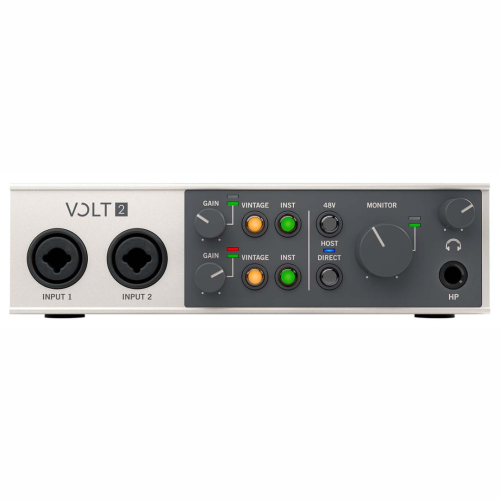 - يمنحك فولت 2 توصيلات صوتية بسيطة بمدخلين ومخرجين. ما عليك سوى توصيل الميكروفونات أو الأدوات الموسيقية الخاصة بك باللوحة الأمامية. ثم قم بتوصيل مكبرات الصوت أو سماعات الرأس الخاصة بك لمراقبة الصوت الخاص بك دون أي تأخير. مع Volt، ستتمكن من الإبداع كالمحترفين وبسرعة.