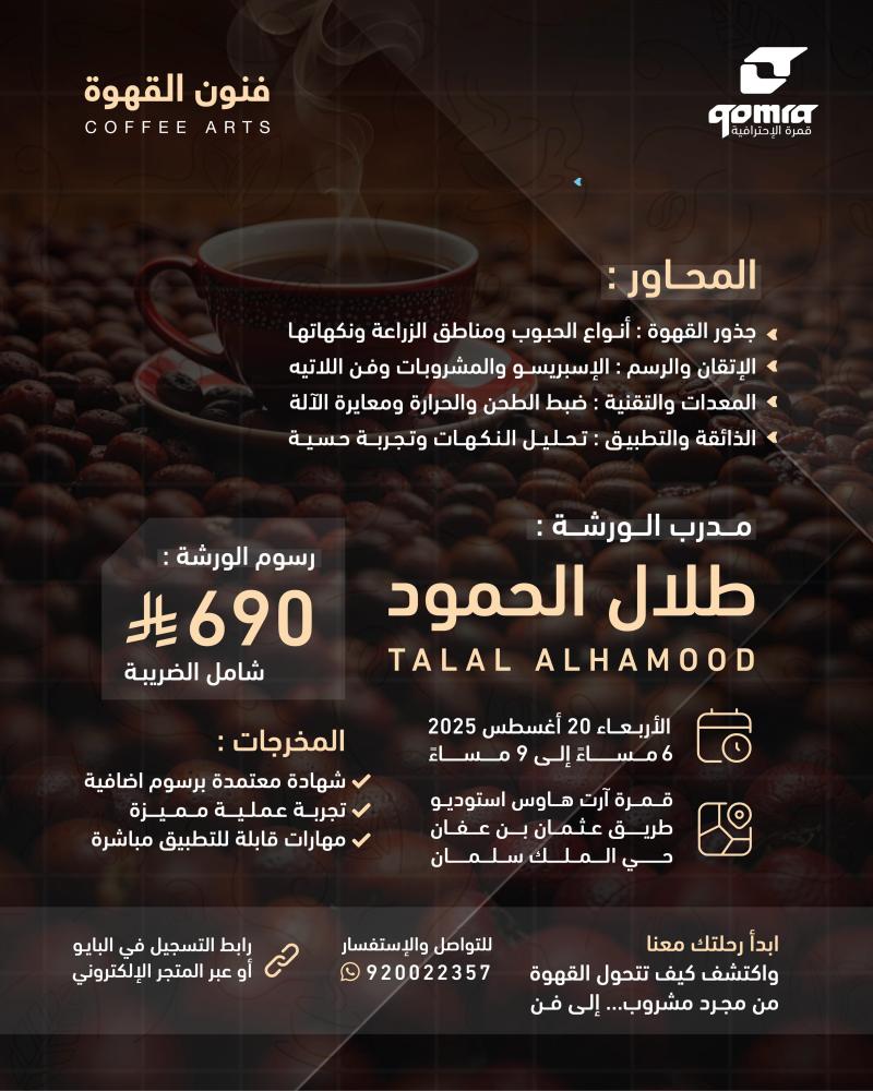 انضم إلى ورشتنا الشاملة في فنون القهوة، المصممة بعناية للارتقاء بمهاراتك من الأساسيات إلى مستوى الاحتراف.