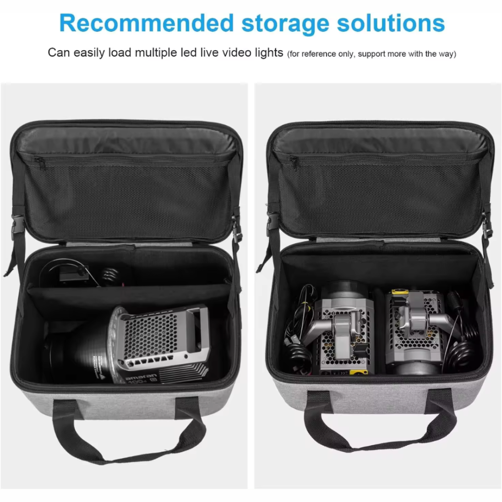 - يأتي بمقبض حمل مريح، مما يجعل من السهل نقله أثناء جلسات التصوير في الهواء الطلق. حزام الفيلكرو الموجود على غطاء العلبة لتثبيت الحوامل الثلاثية أو الأضواء.