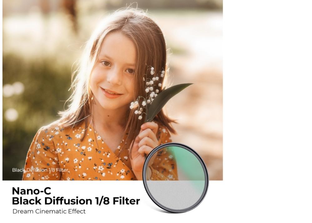 فلتر Black Mist Diffusion 1/8 – يوفّر تأثيرًا سينمائيًا حالِمًا على الصور ومقاطع الفيديو، مثالي لإضفاء مظهر ناعم وجوّ ضبابي فني.