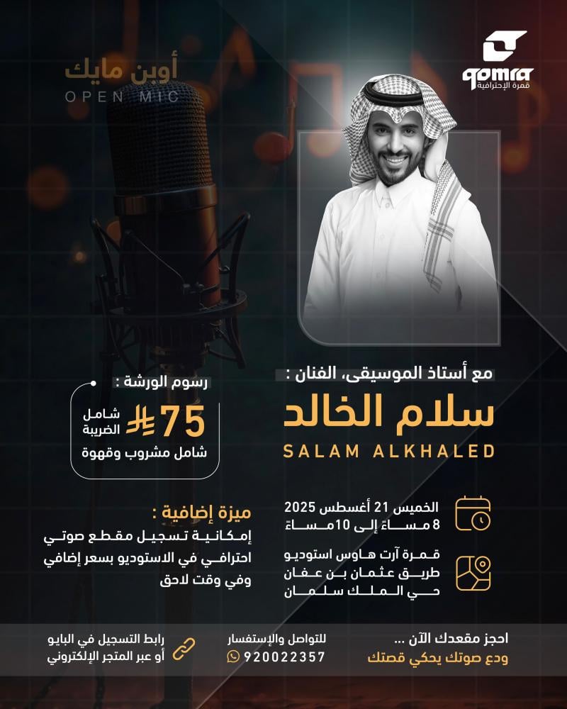 يسرنا في قمرة الإحترافية أن نعلن عن فتح التسجيل لحضور الورشة التدريبية : ( أوبن مايك )