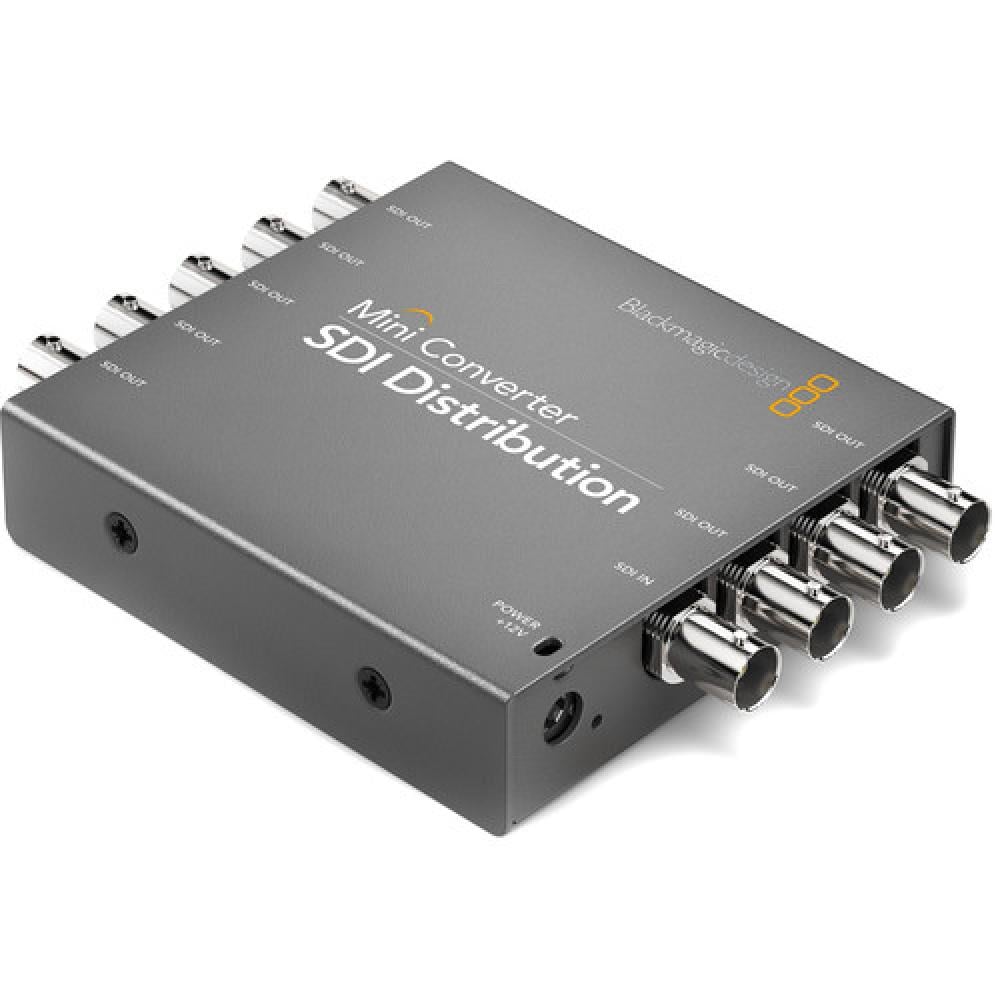 إن Blackmagic Design Mini Converter SDI Distribution عبارة عن مضخم توزيع 1x8 لإشارات SD-SDI و HD-SDI و 3G-SDI. يكتشف المحول الصغير نوع إشارة الإدخال تلقائيًا ، ويعيد تسجيله ، وتتطابق مخرجاته الثمانية تلقائيًا مع إدخال فيديو SDI. يمثل هذا الجهاز طريقة ميسورة التكلفة لتوزيع إشارات SDI في جميع أنحاء المنشأة أو الشاحنة.
