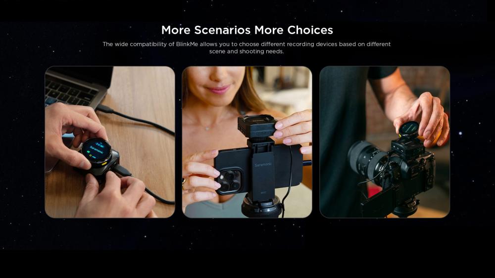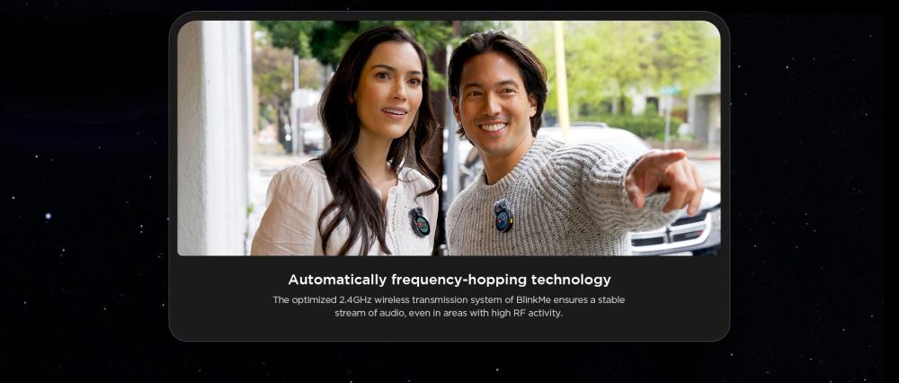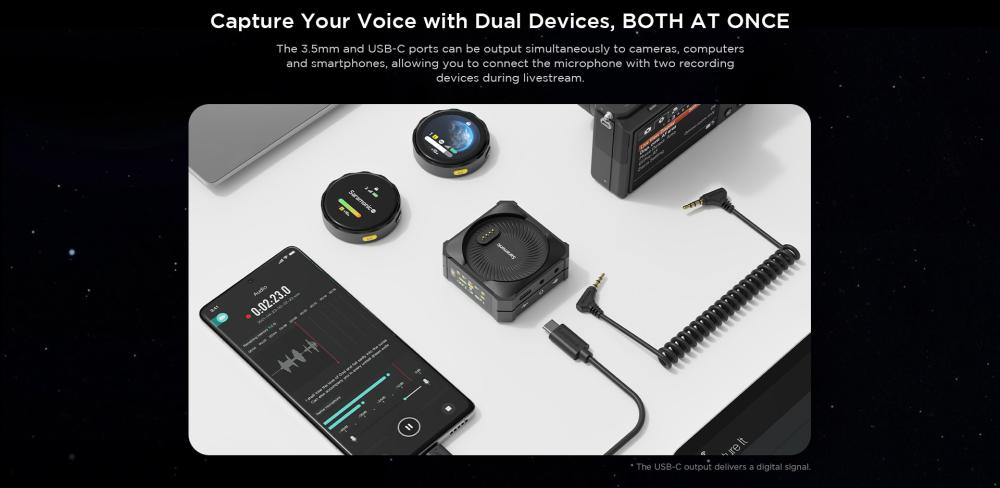 - نظام ميكروفون لاسلكي من الجيل التالي لشخصين يوفر صوتًا عالي الجودة للكاميرات والأجهزة المحمولة والمسجلات والخلاطات وأجهزة إدخال TRS أو TRRS الأخرى مقاس 3.5 مم وأجهزة USB-C