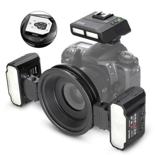 يمكن أن يدور كل R200 حتى 60 درجة أفقيًا و 45 درجة رأسيًا. كما أنها قابلة للفصل تمامًا ، مما يتيح سهولة تحديد موضع المشهد. يمكن أيضًا أن تدور الحلقة الأمامية لـ Macro Twin Lite MK-MT24 بشكل مستقل ، مما يساعد على ضمان التحكم المرن والحرية في إنشاء بيئة إضاءة مصممة خصيصًا للموضوع الموجود.
