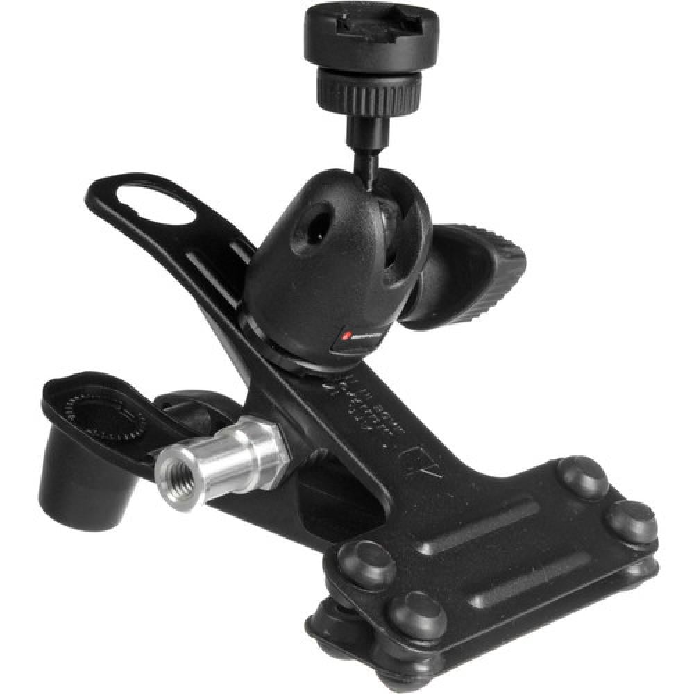 A staple in any film or video collection, the Manfrotto 175F-2 Cold Shoe Clamp is a great way to lighten up your gear bag while using the on-camera flash to illuminate your subject. The clamp allows photographers on the go to take advantage of the off-camera TTL capabilities of their camera systems to create small, lightweight flash groups, as well as support lights or cameras weighing up to 4.4 lbs. Its jaws can attach to objects up to 1.57 inches thick, such as chairs, shelves, and poles. Rubber inserts inside the clamp prevent scratching and damage to paint or furniture. The clamp features a 5/8-inch receiver for light stands and a 5/8-inch screw for mounting tools like Super Clamps with matching receivers. The 175F-2 Cold Shoe Clamp is topped with a metal locking shoe mounted on a swivel ball for precise positioning of your gear.