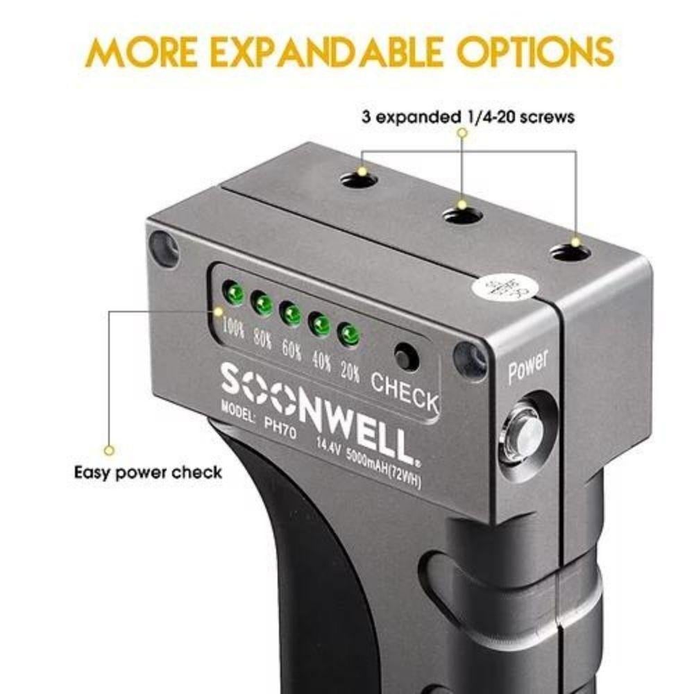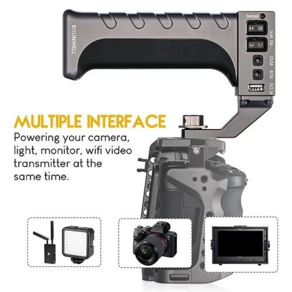 The Soonwell PH70 Battery Power Grip can be directly attached to your camera cage to charge your device.