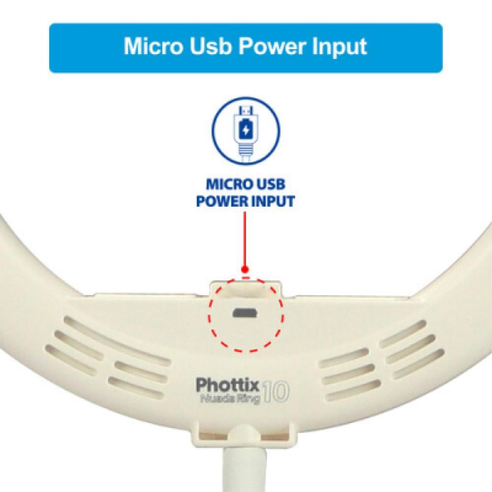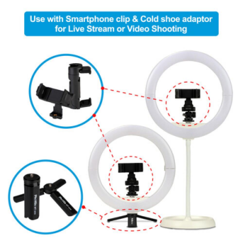 Featuring a unique design that allows the light to fold in half for storage, transport, or to illuminate two people at once, the Nuada Ring 10 LED Light Go Kit from Phottix features variable color temperatures from 2600 to 5800K to blend into any ambient lighting situation, match other fixtures, or just for creative expression. The light has a high CRI of 96