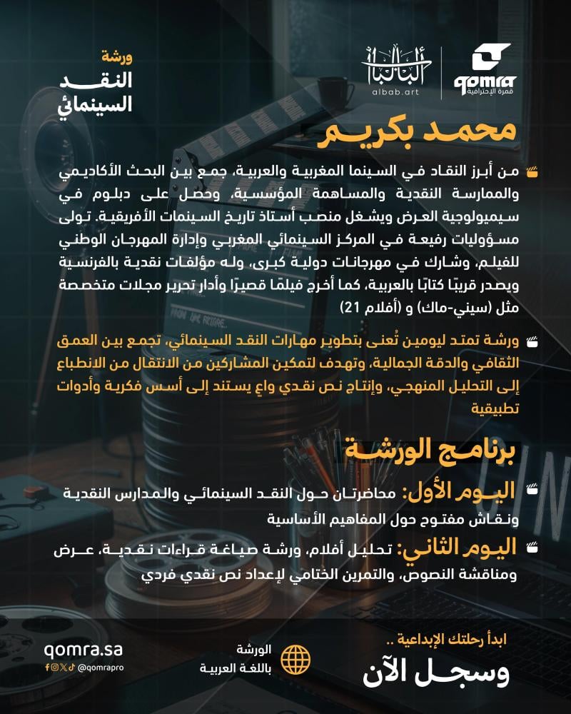 Embark on an intellectual journey that takes you from initial impressions to an in-depth analysis of the film, with one of the most prominent critical voices in the Arab world, Mohamed Bakrim—a professor of African cinema history, director of the National Film Festival in Morocco in previous editions, and a member of major juries from Berlin to Cannes.