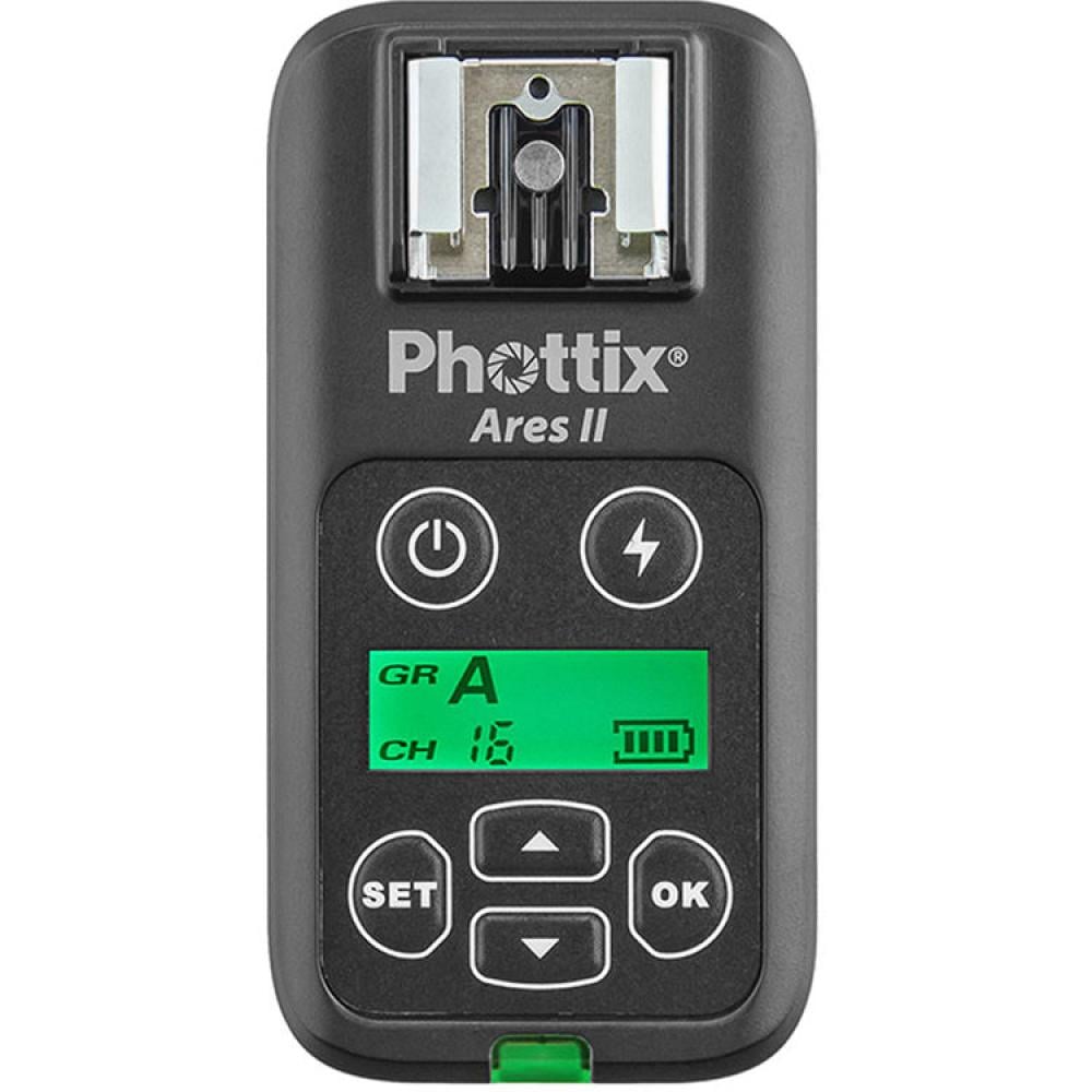 - Enhance your flash capabilities with the Ares II Flash Trigger Receiver from Phottix. The receiver features a hot shoe and a 3.5mm sync port for connection to both on-camera flashes and studio lights. Once connected, this receiver can be triggered by a separately available Ares II transmitter from up to 492 feet away. This system also uses a 2.4GHz frequency to minimize interference, as well as access to 16 channels, 4 groups, and digital ID codes so it won't be accidentally triggered by nearby photographers.